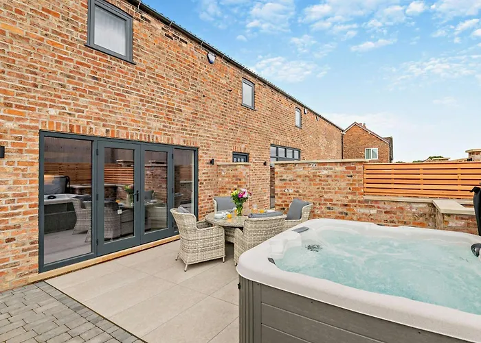The 2-bedroom 3 Bed In York Oc-93897 Tollerton villa, located only 6 minutes' walk from St Michael's, invites guests to relax in a hot tub.